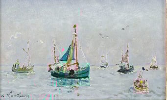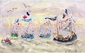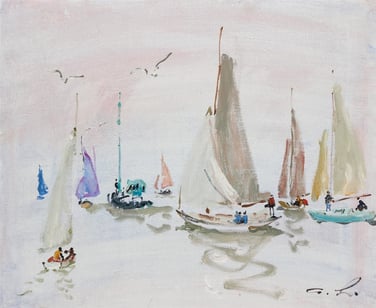 "Bateaux en fête au large de Trouville" Huile sur toile 22 x 35 cm