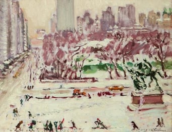"New-York sous la neige" Huile sur toile d'origine 27,5 x 35 cm