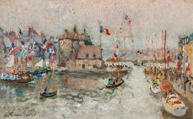 " Fête des marins à Honfleur " 1967 Huile sur toile 22 x 35 cm
