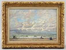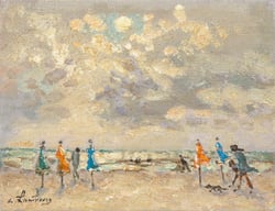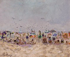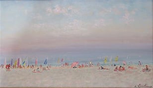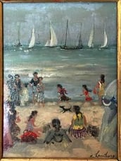 " Beau temps sur la plage " Huile sur toile 34 x 21 cm