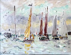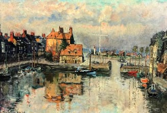 " Honfleur " 1963 Huile sur toile 33 x 55 cm signée en bas à gauche, monogrammé, située et datée automne 1963 au dos